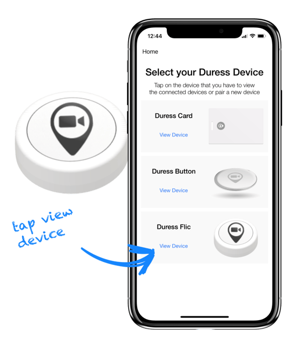 The Duress™ Flic allows you to activate an emergency without touching your phone. Before the Flic can be used, it needs to be paired to your mobile device.